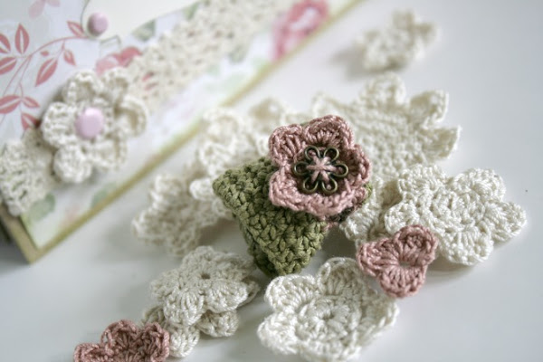 Son además muy cómodos. Y tu? también tejes? Usas flores tejidas en tus trabajos? si no lo has hecho todavía te animo a que lo hagas, verás que son bien "apañadoras".