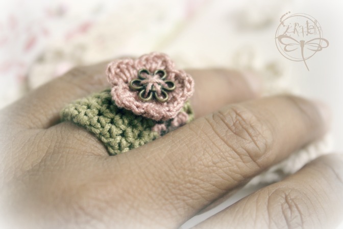 Y ya puesta... no paro, hasta que se me duerme el dedito chiquito y luego todos mis deditos... ay!! cuando fui al médico hace marras, me salió conque no tenía nada, ahora el problema se ha agudizado y por eso ya no puedo tejer como antes, pero bueno de vez en cuando una florcita... o por qué no un anillito?