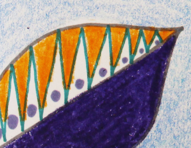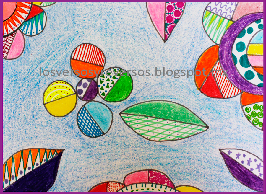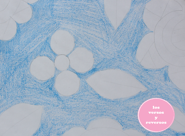 Primero, hice el trazo en lápiz de las flores y luego coloreé el fondo con crayola azul.