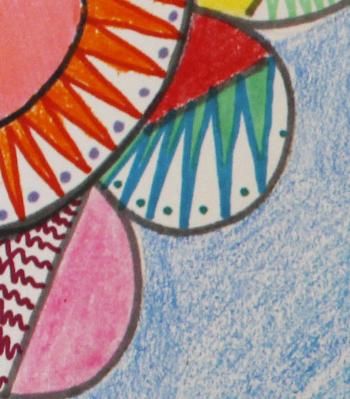 Después dividí las flores en varias secciones y empecé a decorarlas, para lo cual, usé crayolas y marcadores permanentes.
