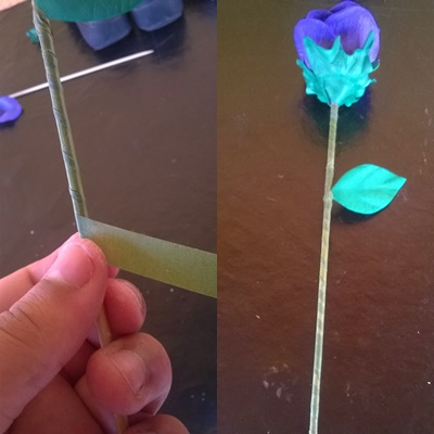 Tomé dos hojas y pegado debajo de la cola de los pétalos