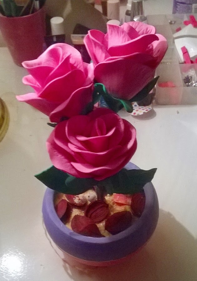 4 ° Después de la rosa hicieron tiempo para pegar las hojas de la misma.