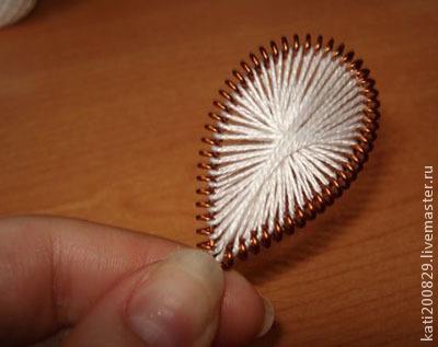 Enrollamos un hilo grueso en la espiral de cada pétalo.