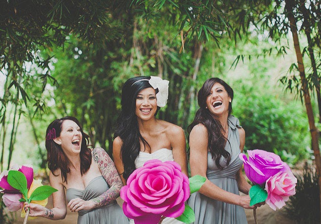 Me ha sorprendido muchísimo el efecto que puede dar una flor de papel en una novia y en sus damas de honor, te transporta a otra época como un cuento de hadas....