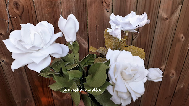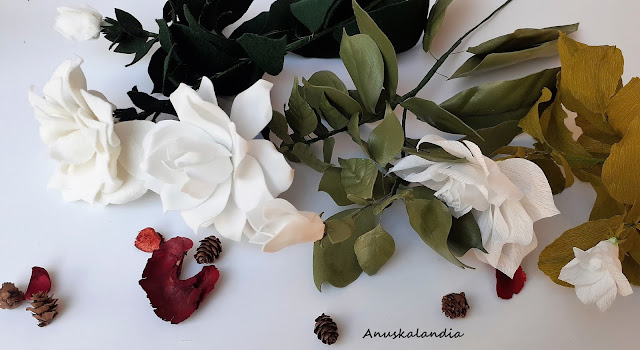 Así, que me puse manos a la obra con los siguientes: foamiran, papel crepé y fieltro.