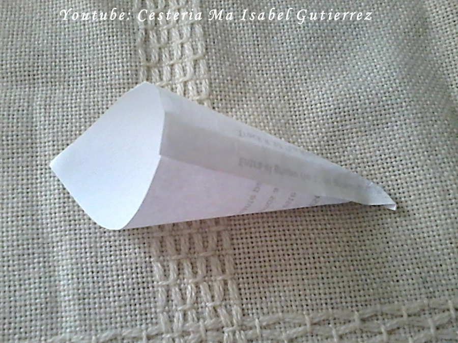 A lo largo de uno de los lados del cuadrado, ponemos pegamento o silicón, tomamos el lado que está contrario y pegamos encima, formando estos conos.