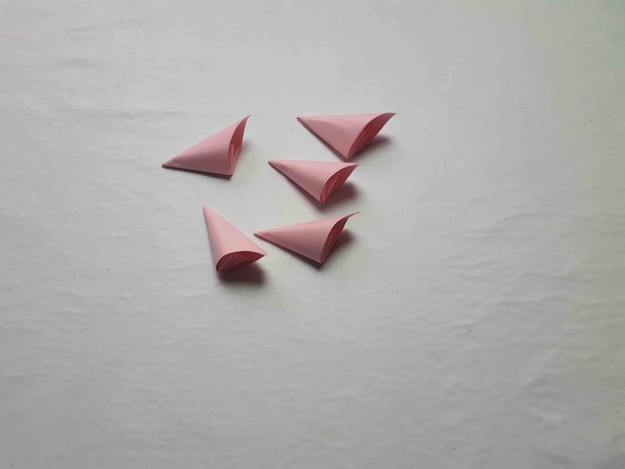 Se pega y se deja secar con un clip o una pinza. Para hacer una flor se necesitan cinco piezas.