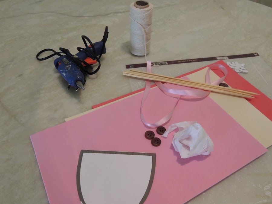Esa flor la pegamos en un palito de brochete forrado con una cinta bebé.