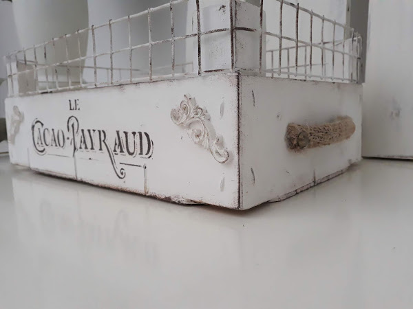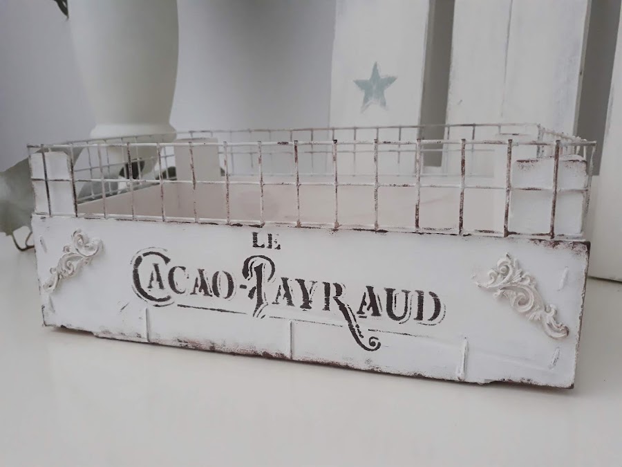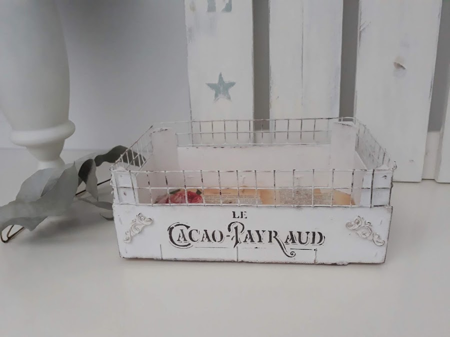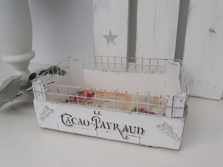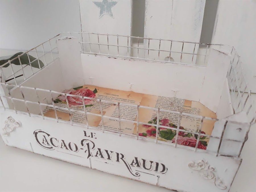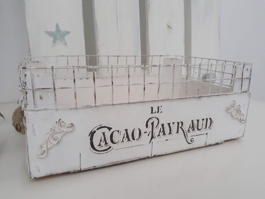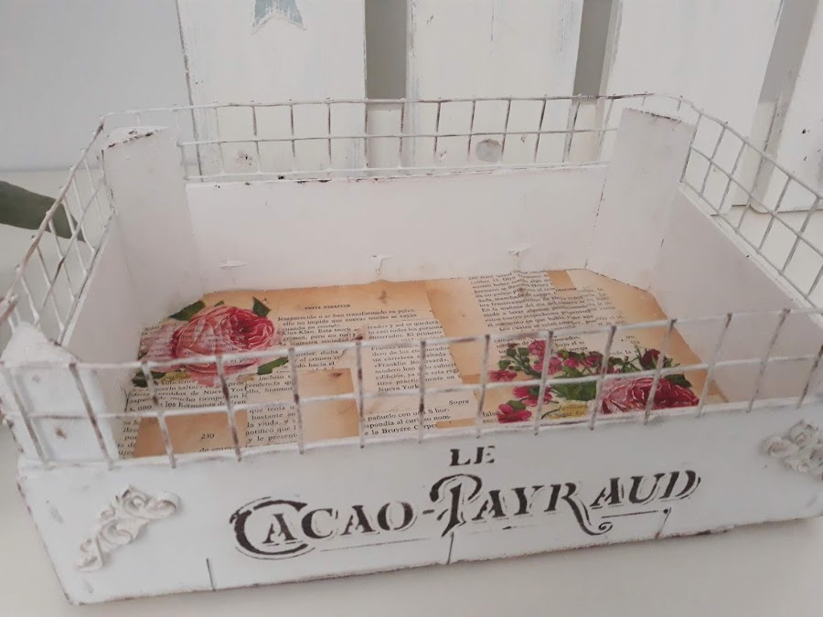 Toda la caja incluida la malla está pintada con dos manos de pintura tiza color blanco.