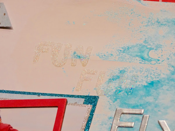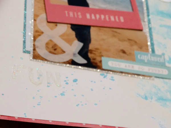 Una vez seco, posicioné mi foto con algunas capas de papel decorado y de papel con purpurina (que me gusta un brillo ehhh jajaja) y para resaltar la imagen un marco de chipboard enmarcando la escena.