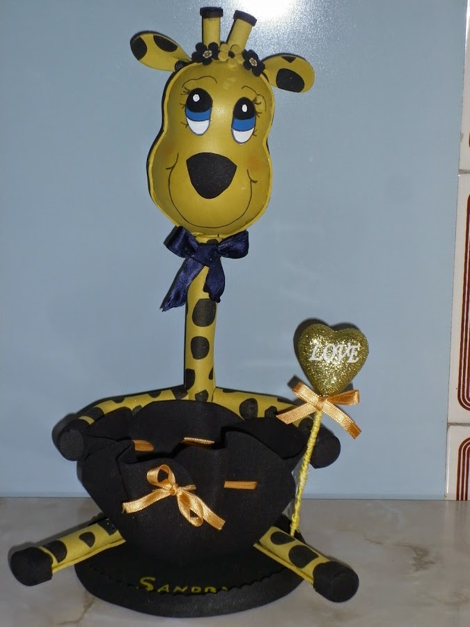 Esta jirafita es un encargo que me han hecho para regalar a una chica que le encantan las jirafas. Dentro de la cestita van a ir bombones. Espero que le guste.