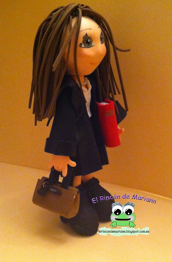 Después de un fin de semana terminando algunos trabajitos, hoy toca mostrar el resultado de alguno de ellos... una fofucha abogada con todo tipo de detalles..., su bolso de Tous, su libro de leyes, sus botines de tacon...