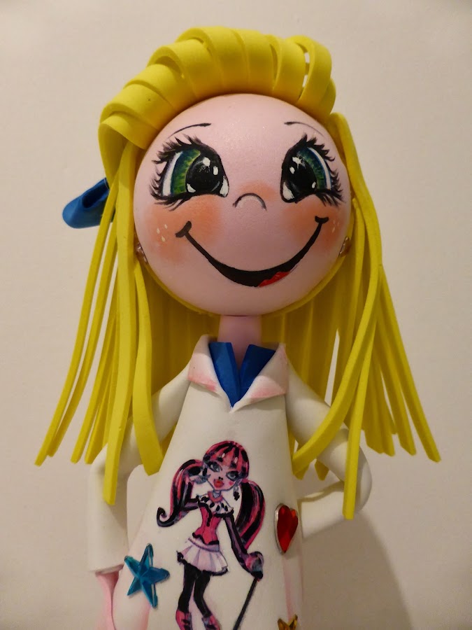 Me pidieron una fofucha no muy grande, que fuera sencillita pero que la chica se viera muy arreglada porque es muy presumida, con los datos que me aportaron este es el resultado. Medidas: 20cm