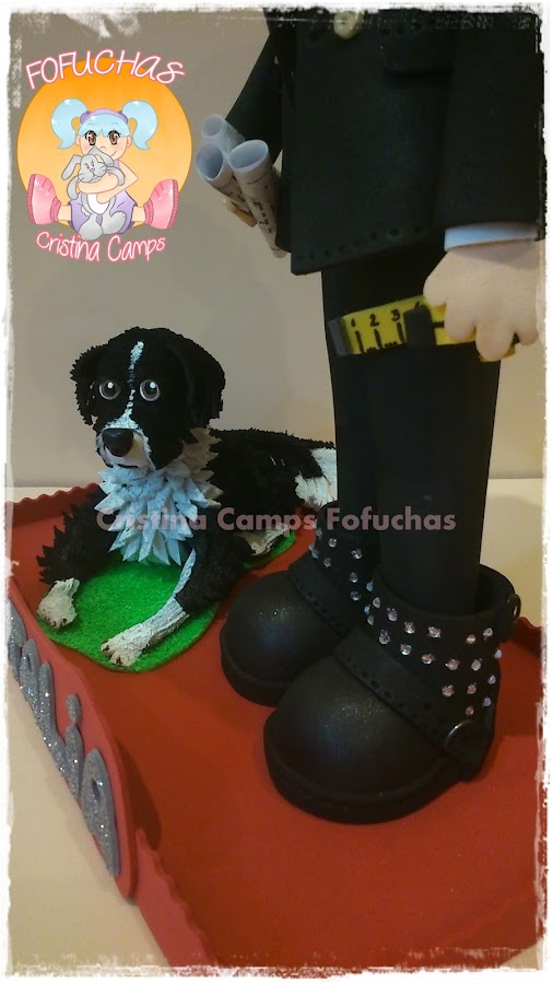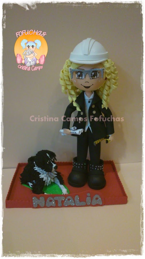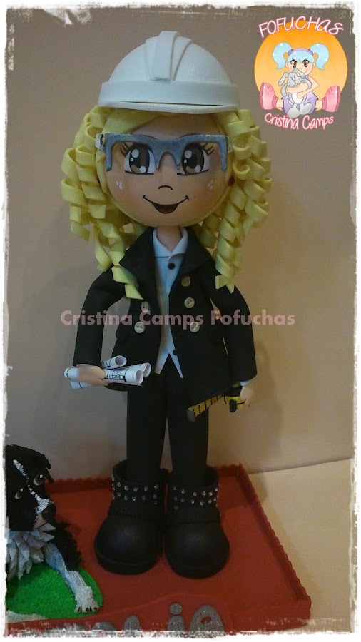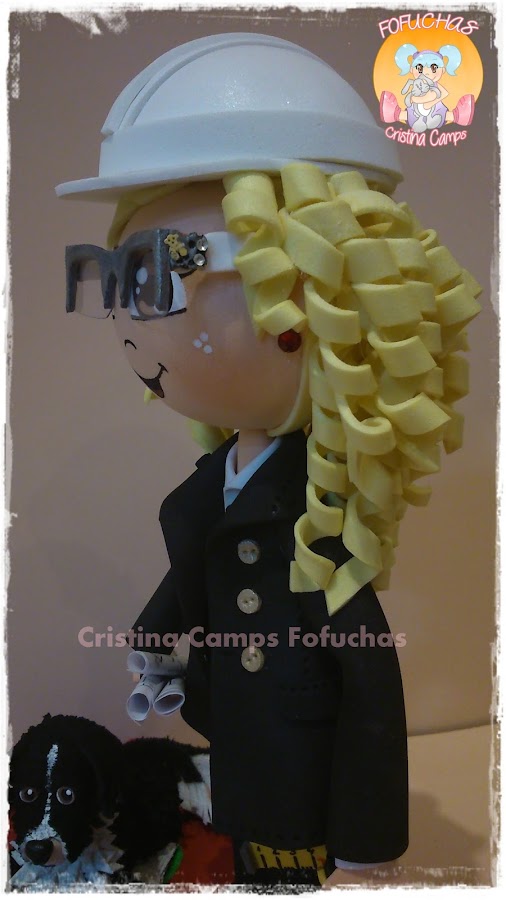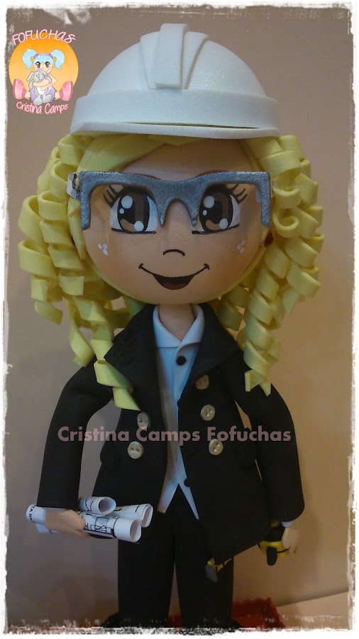 Aqui os dejo esta fofucha arquitecta, va junto a su mascota. Lleva unos planos, una cinta métrica, casco, gafas de tous, etc...