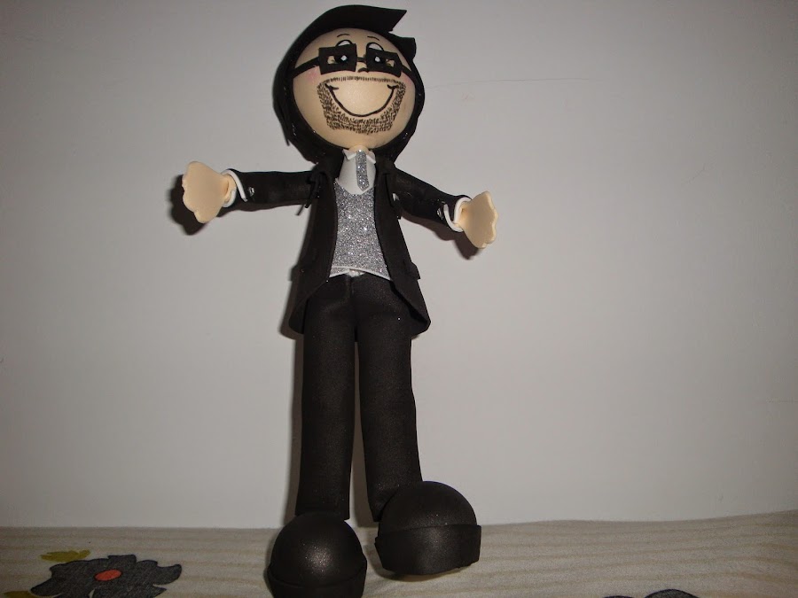 Esta fofucha flamenca fué un encargo de una apasionada de la Feria de Abril a la que le hacía mucha ilusión tener su fofucha sevillana. Es un poco más grande de lo normal porque la quería con muchos volantes. Está hecha 100% de goma eva exceptuando las perlas de los pendientes y el collar. Incluso los lunares del vestido son pequeños trozos de goma eva pegados y el mantón y el abanico son pintados ...