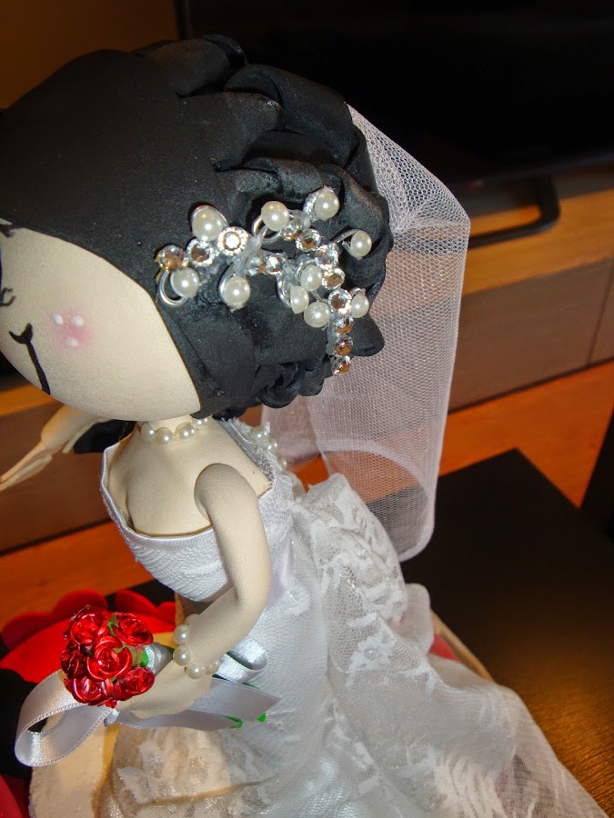 Esta fofucha es un poco distinta de las que hago normalmente, el cuerpo esta torneado y el vestido esta forrado con blonda. Me gusta mucho el resultado.