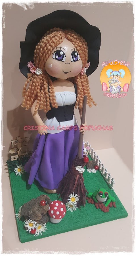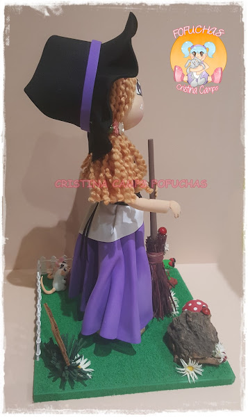 Buenas tardes a tod@s, en mitad de este largo fin de semana, me paso para enseñaros un trabajo que me ha encantado hacer. Todas las muñecas que hago suelen ser siguiendo un modelo, esta he podido hacerla dando rienda suelta a mi imaginación. El único patrón que he seguido es que tenia que ser una bruja. Espero que os guste mucho esta versión de bruja buena que he hecho. Os agradeceré vuestros comentarios y os leo siempre. Muchos besazos.