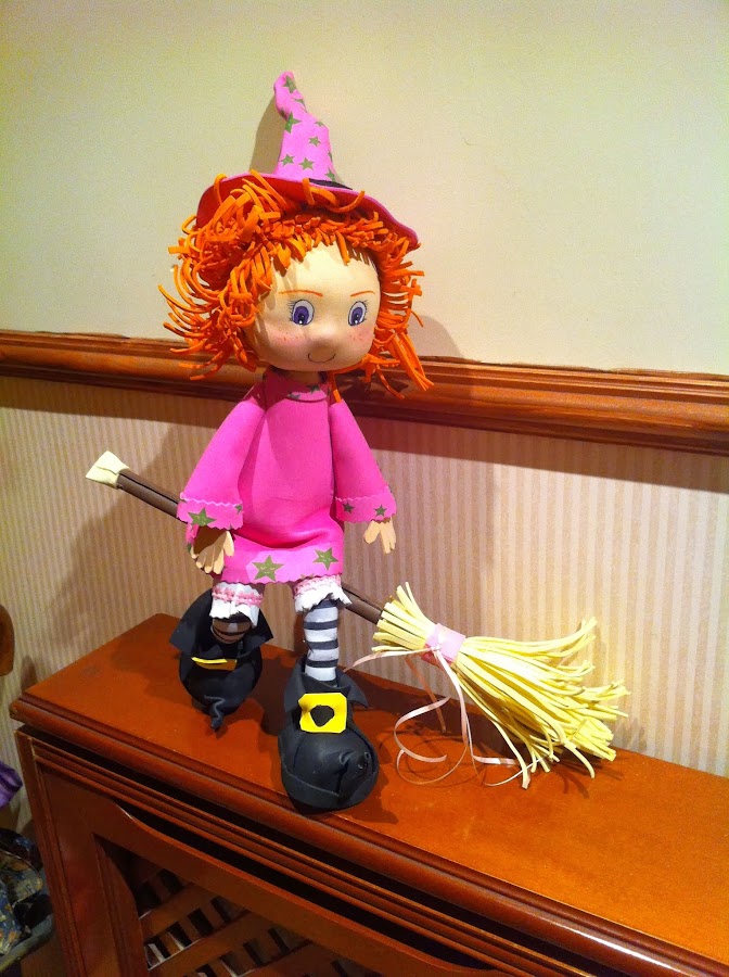 Hoy os voy a enseñar una fofucha que hice hace unos meses, es una brujita. Está hecha con la cara en relieve.