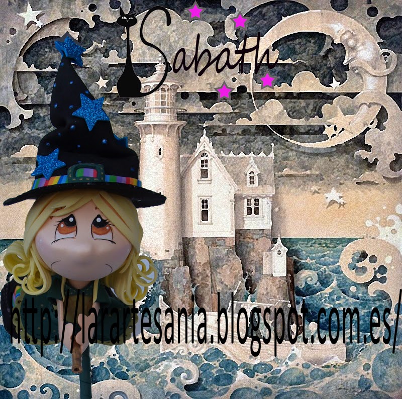 Buenas noches, os dejo el último trabajo que he echo para Teresa, la cual me encargo una brujita para su sobrina. La verdad es que todos mis trabajos me gustan pero hay algunos que dejan huella y este ha sido uno de ellos. Me he divertido mogollón diseñándolo y he tenido la ayuda incondicional de mi marido. Espero que os guste.