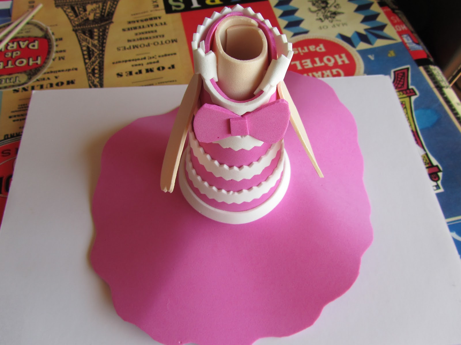 Podéis acabar de decorar cómo os guste, yo, por ejemplo, le puse estás flores de foami en los zapatos.