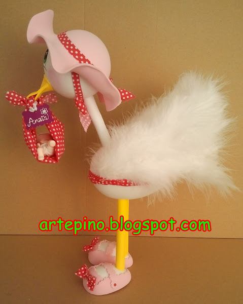 Y como tía - madrina, no podía faltar mi primer regalo, esta ciguëña con el bebe.