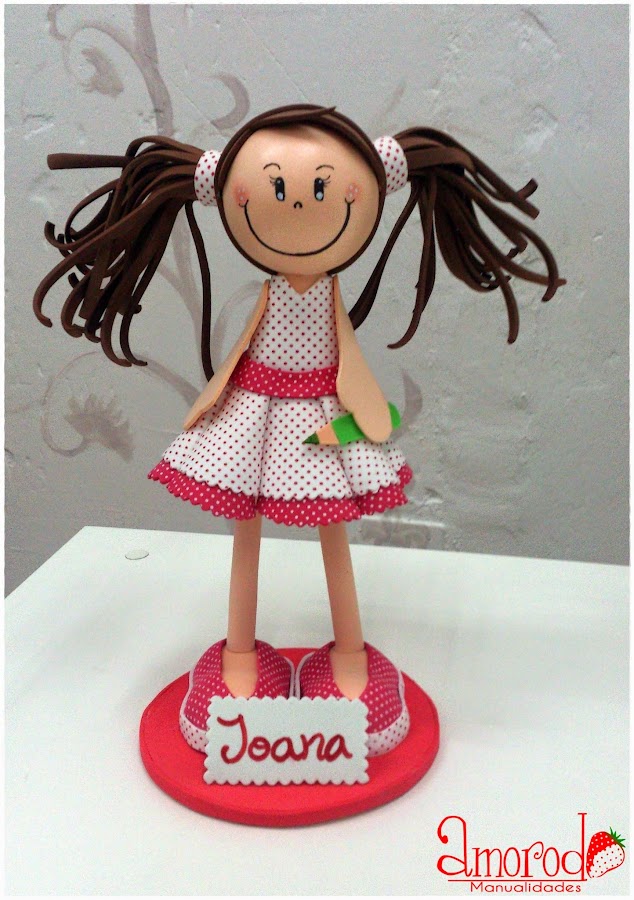 Todas las fofuchas que hago las realizo con mucho amor pero la que ves a continuación es que me encanta. No sé si es por el aire de traviesa que lleva pero me gusta o por la dulzura que desprende. Estamos en verano y lo mejor es que nuestras fofuchas vistan adecuadamente. Lleva un traje fresquito con bolsillos que tienen corazones del mismo color que la piruleta. Como complemento no podía faltar l ...