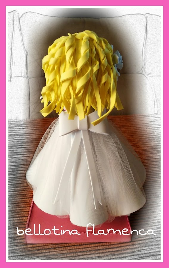 En tela color celeste con adornos en color negro y rojo. Una bonita combinación que se va para Tenerife.