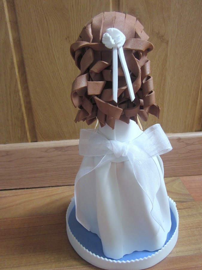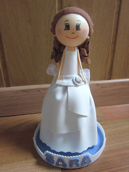 EN ESTA OCASIÓN, ES LA FOFUCHA PARA UNA COMPAÑERA DEL COLE QUE TAMBIÉN HIZO LA COMUNIÓN. DETALLE DEL PRENDIDO Y LA LAZADA CUALQUIER PERFIL ES BUENO