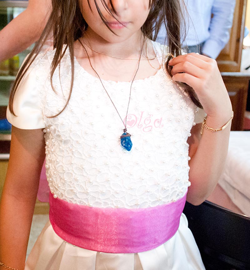 Le pregunté a Luna si quería que le hicera algo , algún detallito , y eligió el collar de las sirenas de H2O que lucen en la tercera temporada