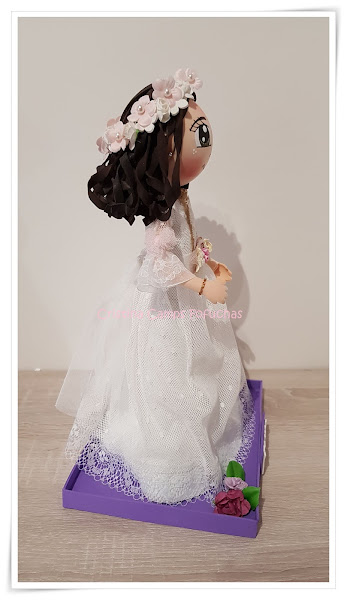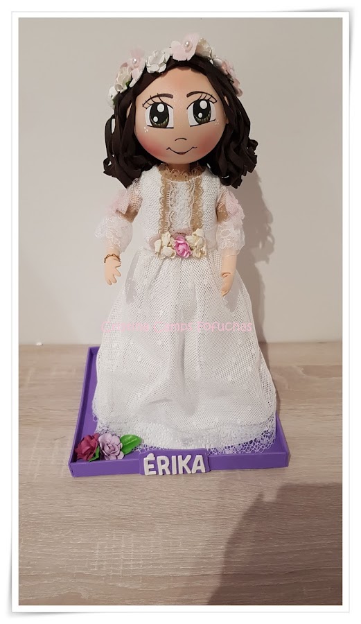 De nuevo una muñeca de comunión. Os dejo también una foto de la nena con su muñeca que me han mandado sus papas.