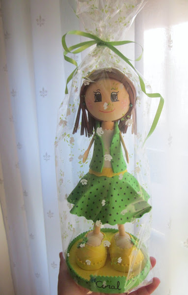 EN ESTA OCASIÓN, ES LA FOFUCHA PARA UNA COMPAÑERA DEL COLE QUE TAMBIÉN HIZO LA COMUNIÓN. DETALLE DEL PRENDIDO Y LA LAZADA CUALQUIER PERFIL ES BUENO