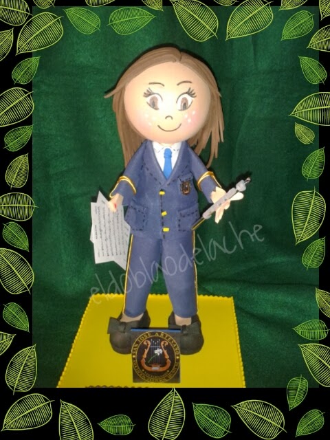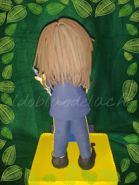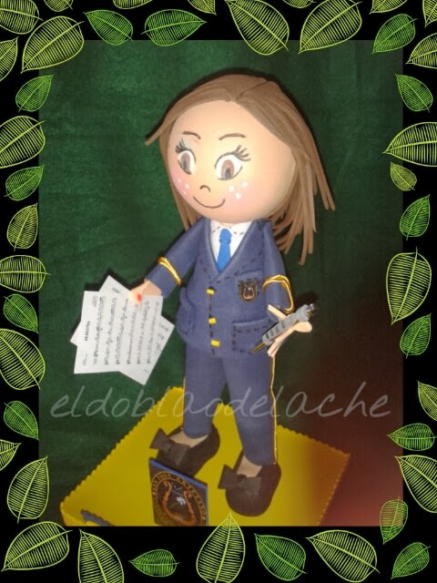 Pertenece a una banda de música y por eso le pusimos a su fofucha el traje que llevan y su flauta travesera.