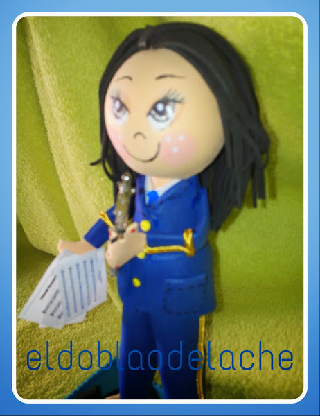 En tela color celeste con adornos en color negro y rojo. Una bonita combinación que se va para Tenerife.