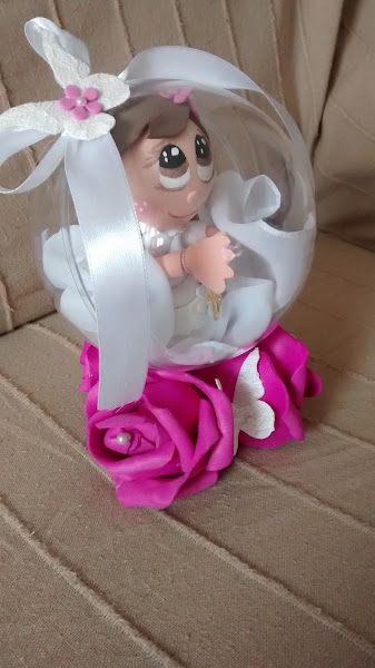 Abrimos la temporada de detalles para comunión. En este caso he probado con un nuevo soporte para la fofucha que es una bola transparente. La verdad que es un dulce y gran detalle de comunión.