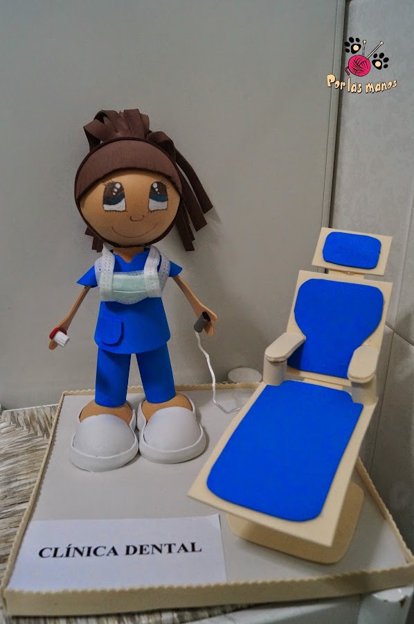 ¡Qué ilusión nuestra primera fofucha por encargo! Tras la apertura de nuestra tienda online, hemos tenido nuestro primer encago: una fofucha dentista. Sin duda está hecha con mucho cariño, y con algunos detalles típicos de los dentistas, aunque no he podido hacerlos todos. Esto me recuerda mucho a cierto radiólogo que hice hace unas semanas (que también me llevó tiempo, aunque esta menos, porque la silla es más facil de hacer).
