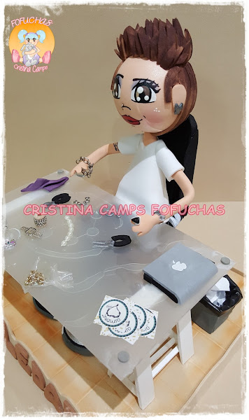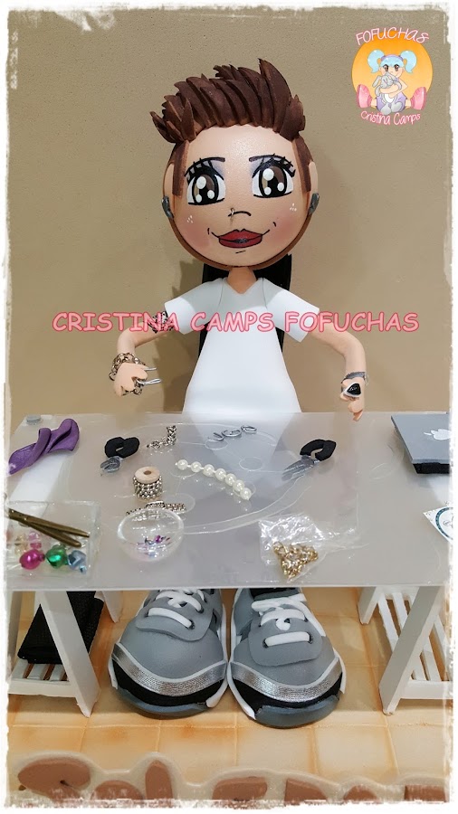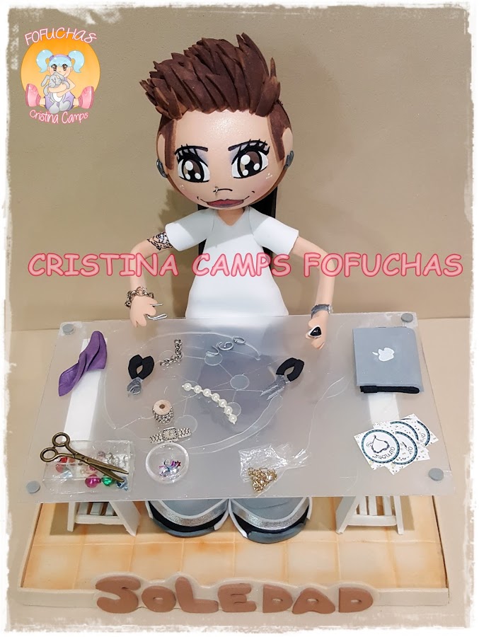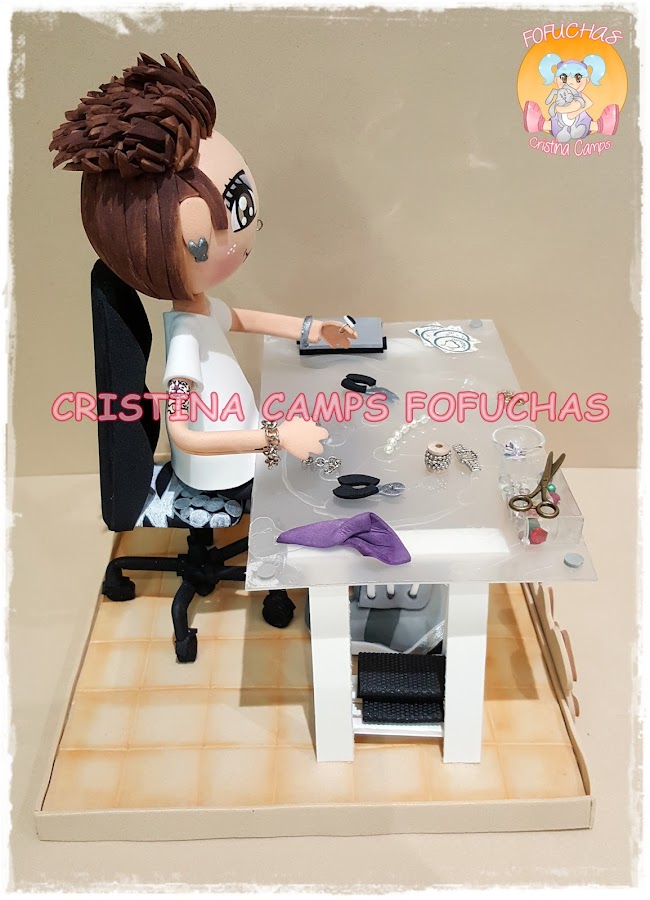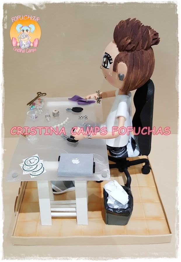 Hoy os dejo una fofucha para una chica que diseña joyas, y muy bien! La he puesto en su mesa de trabajo, rodeada de las cosas que suele usar para su trabajo. Espero que le haya gustado mucho.