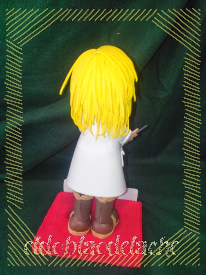 En tela color celeste con adornos en color negro y rojo. Una bonita combinación que se va para Tenerife.