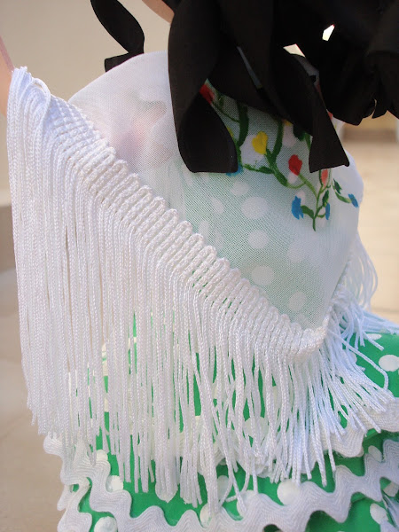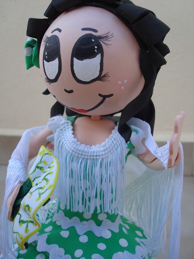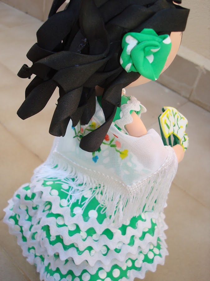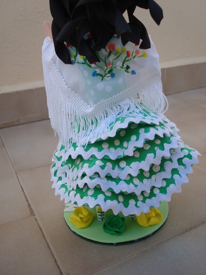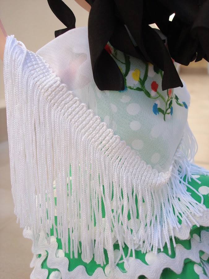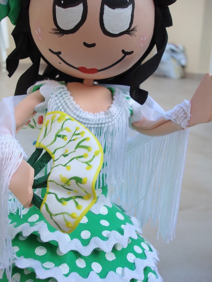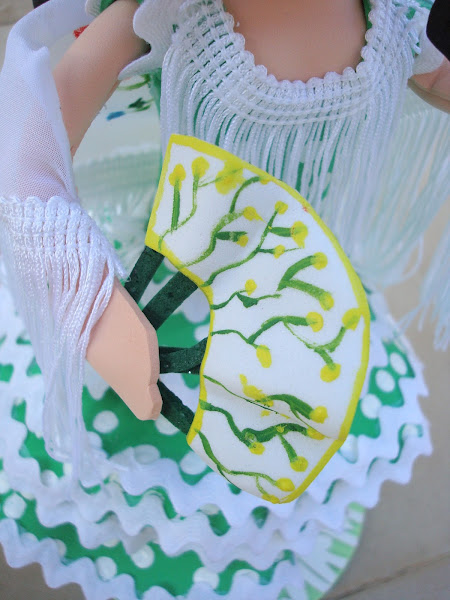Tanto el mantón como los zapatos y el abanico están pintados a mano.