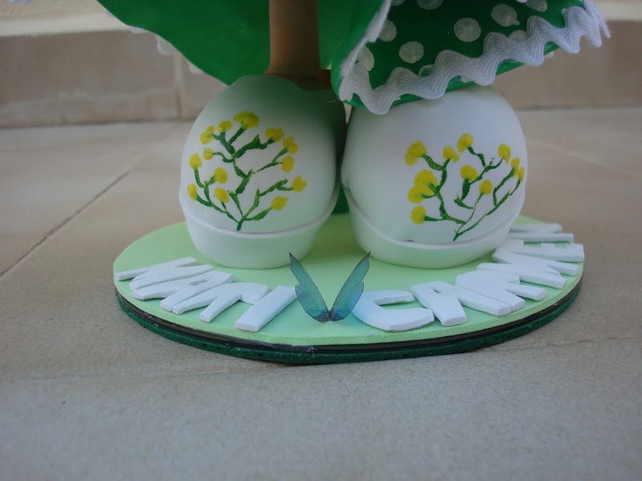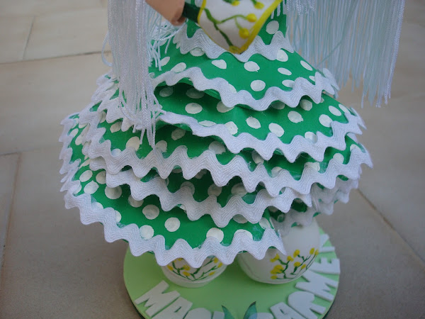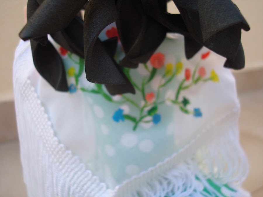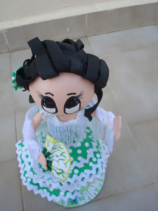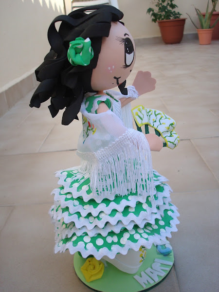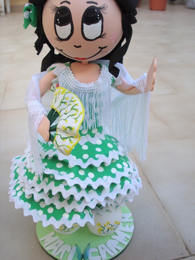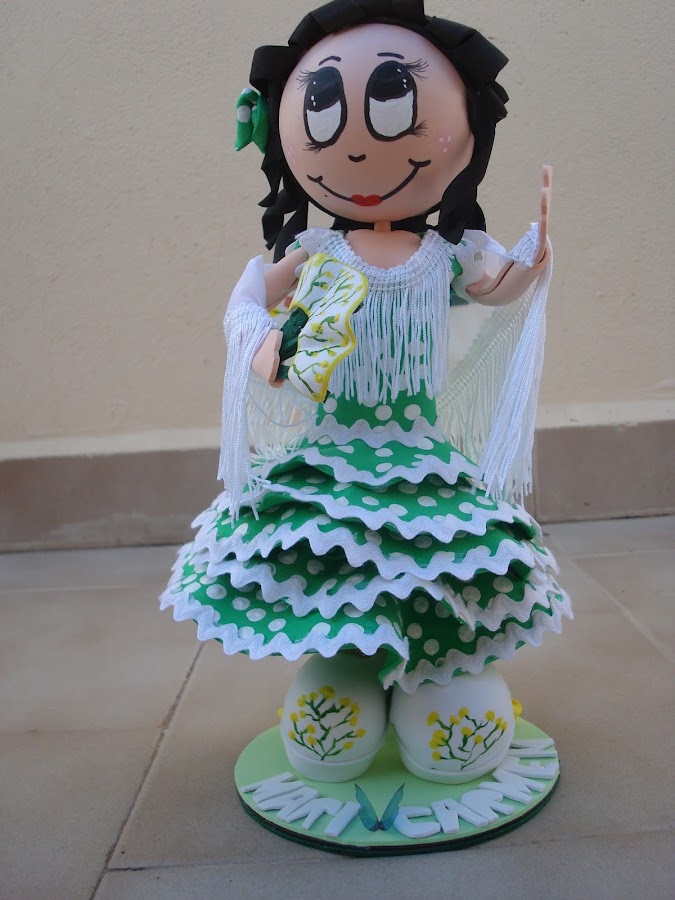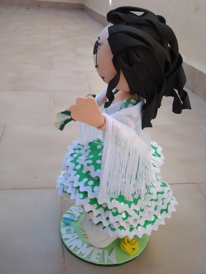 Tanto el mantón como los zapatos y el abanico están pintados a mano.