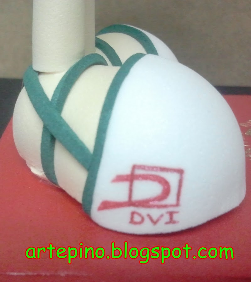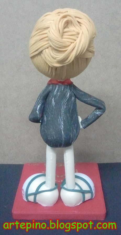 Bueno os tenía un poco abandonados, pero no me he olvidado de vosotros, es que he tenido una semana muy liada, pero aquí vuelvo para seguir subiendo las fotos de los trabajos que realizamos en ARTEPINO.Hoy os voy a enseñar este trabajo que tanto me gusto hacer, me vino a encargar un papi, ya hace un tiempo, una fofucha para poner en la tarta de bautizo de su niña y me trajo la tarjeta que llevaban ...