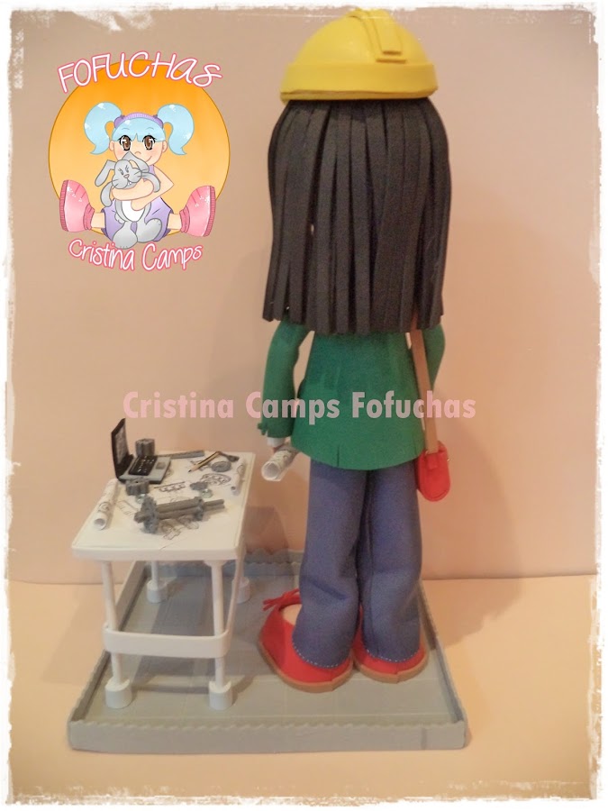 Aquí la tenéis de frentePor detrás Este encargo es uno de los que más me gustó hacer, sin duda alguna y uno con los que más me quebré la cabeza y más disfruté con ello. No lo olvidaré, me sonó el teléfono y al otro lado había una persona conocida que me pedía lago totalmente nuevo. !!Un fofucha viajera¡¡ Fofuchas he hecho ya algunas, ya las iréis viendo. Pero una como esta nunca. Me preguntaba si ...