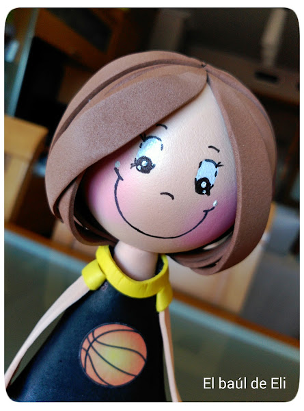 Aquí la tenéis al completo. Se puede ver la pelota de baloncesto que le acompaña y que quise ponerle a modo de pegatina en su camiseta.