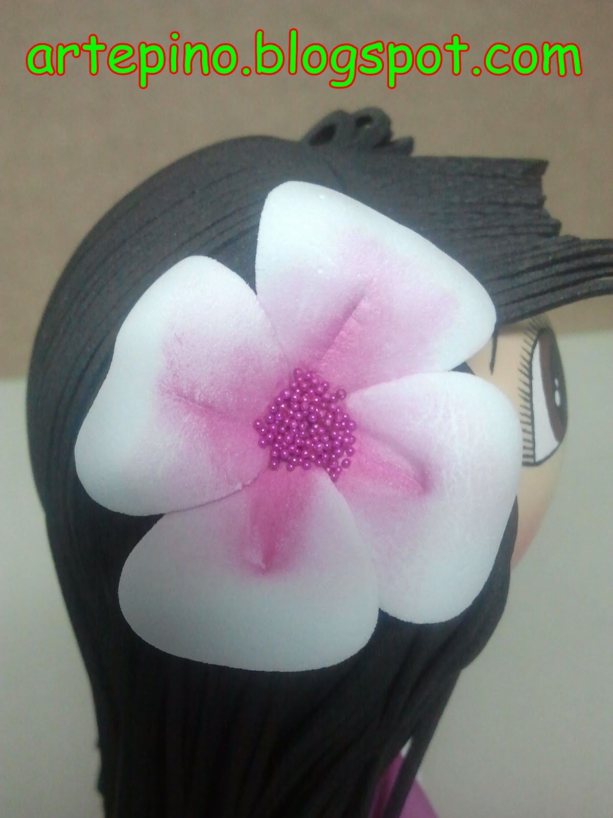 Bueno os tenía un poco abandonados, pero no me he olvidado de vosotros, es que he tenido una semana muy liada, pero aquí vuelvo para seguir subiendo las fotos de los trabajos que realizamos en ARTEPINO.Hoy os voy a enseñar este trabajo que tanto me gusto hacer, me vino a encargar un papi, ya hace un tiempo, una fofucha para poner en la tarta de bautizo de su niña y me trajo la tarjeta que llevaban ...