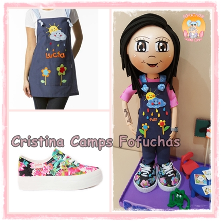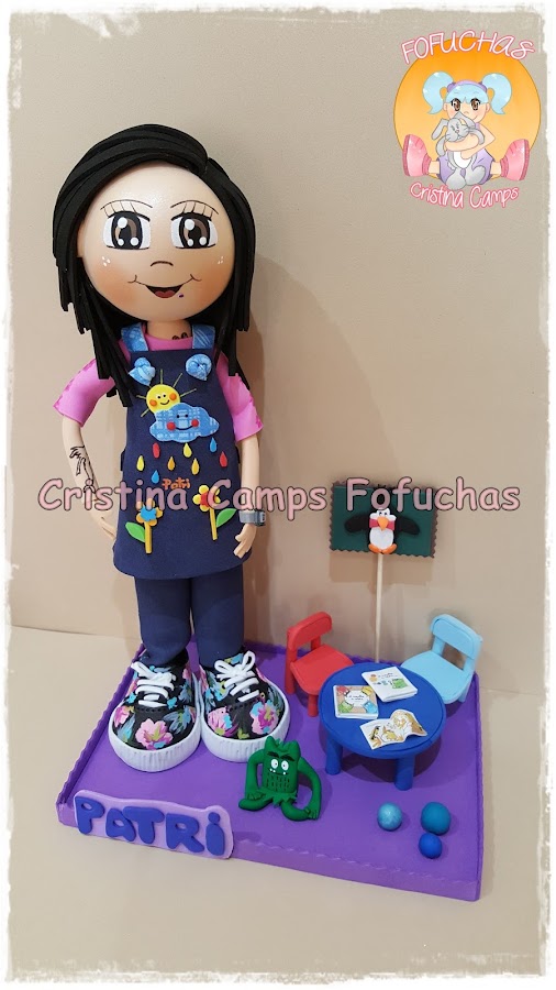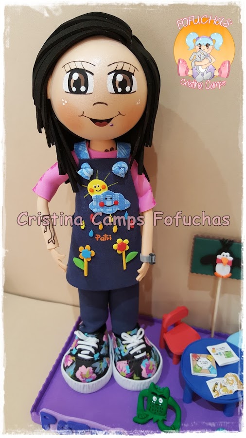 Esta profesora de primaria está totalmente personalizada. los zapatos están pintados a mano. el delantal decorado igual que el original. Lleva un tatuaje de la sirenita y la clase ambientada con sus libros favoritos.