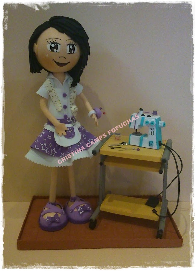 En este caso una modista con su máquina de coser, tiene muchos detallitos este trabajo.