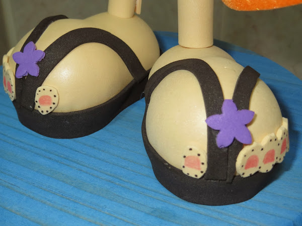 Hemos elegido unas aletas de color amarillo y una toalla de color naranja que necesitará al salir del agua, junto a unas chanclas de color negro. Aquí tenéis de cerca las aletas que lleva en su mano derecha. En esta otra foto os mostramos las chanclas negras con una flor morada que le da un toque de color. También podéis observar que las uñas de sus pies van pintadas. Para la toalla hemos escogido un naranja, la diferencia en esta ocasión es la goma eva que simula ser de felpa cortada. Te deseamos que tengas buena suerte en tus próximas competiciones pero, ante todo, que pases un feliz día. FELIZ CUMPLEAÑOS LAURA