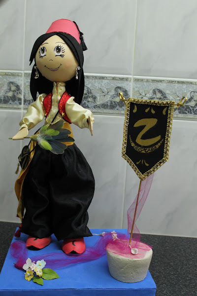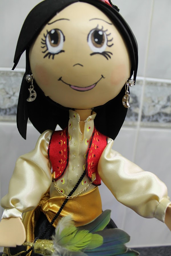 Esta fofucha lleva el traje oficial de mujer de una de las 7 comparsas de moros en concreto de la comparsa de Moros Nazaríes.