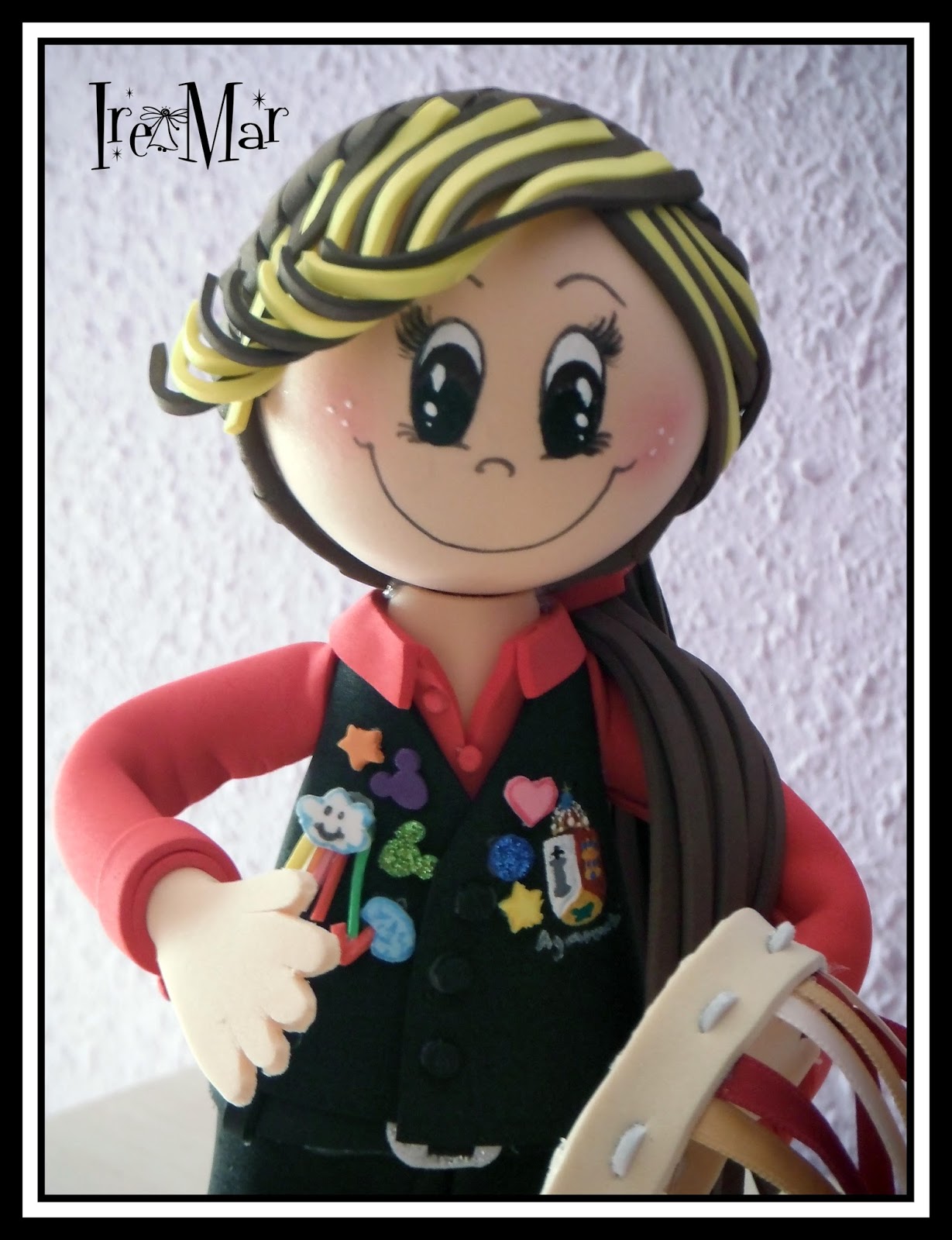 Otra fofucha encargada personalizada, esta vez vestida con un uniforme de una panda "Pastoral" a la que pertenece esta chica Yoli, con ese pelo tan, tan, largo, se la regaló su hermana Sandra, gracias guapas. Me consta que les encantó.