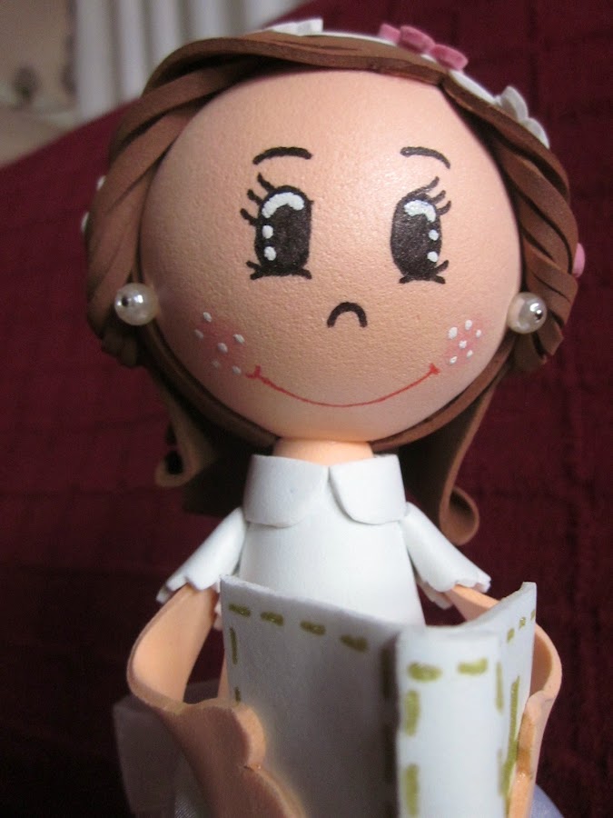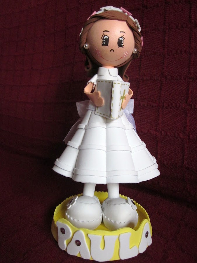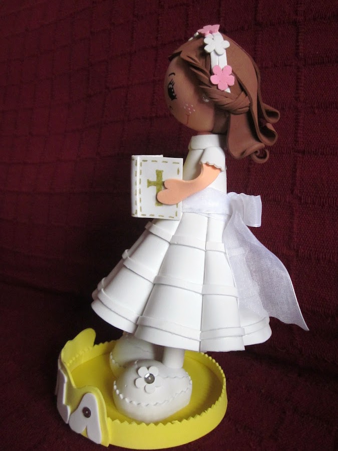 EN ESTA OCASIÓN, ES LA FOFUCHA PARA UNA COMPAÑERA DEL COLE QUE TAMBIÉN HIZO LA COMUNIÓN. DETALLE DEL PRENDIDO Y LA LAZADA CUALQUIER PERFIL ES BUENO