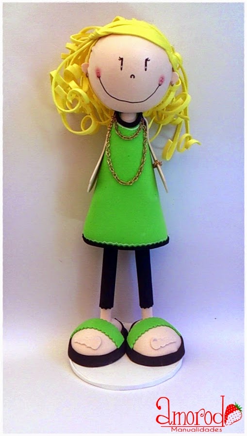 Esta Fofucha se nos ha ido para Salamanca! Es para una chica que hace gimnasia artística. La verdad es que esta chuliisima! Espero que a su dueña le haya gustado ? Es una fofucha Grande (30cm aprox) La parte de arriba del traje esta hecho con encaje el resto es completamente Goma Eva. Muac?